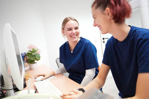 Wir legen Wert auf Verlässlichkeit, Offenheit und gegenseitige Unterstützung. Wer bei uns arbeitet, soll sich fachlich weiterentwickeln können und gleichzeitig mit Freude mit uns den Praxisalltag organisieren.